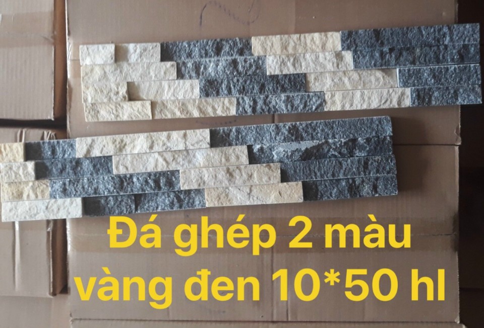 Đá ốp tường ghép 2 màu vàng đen 10x50x2cm